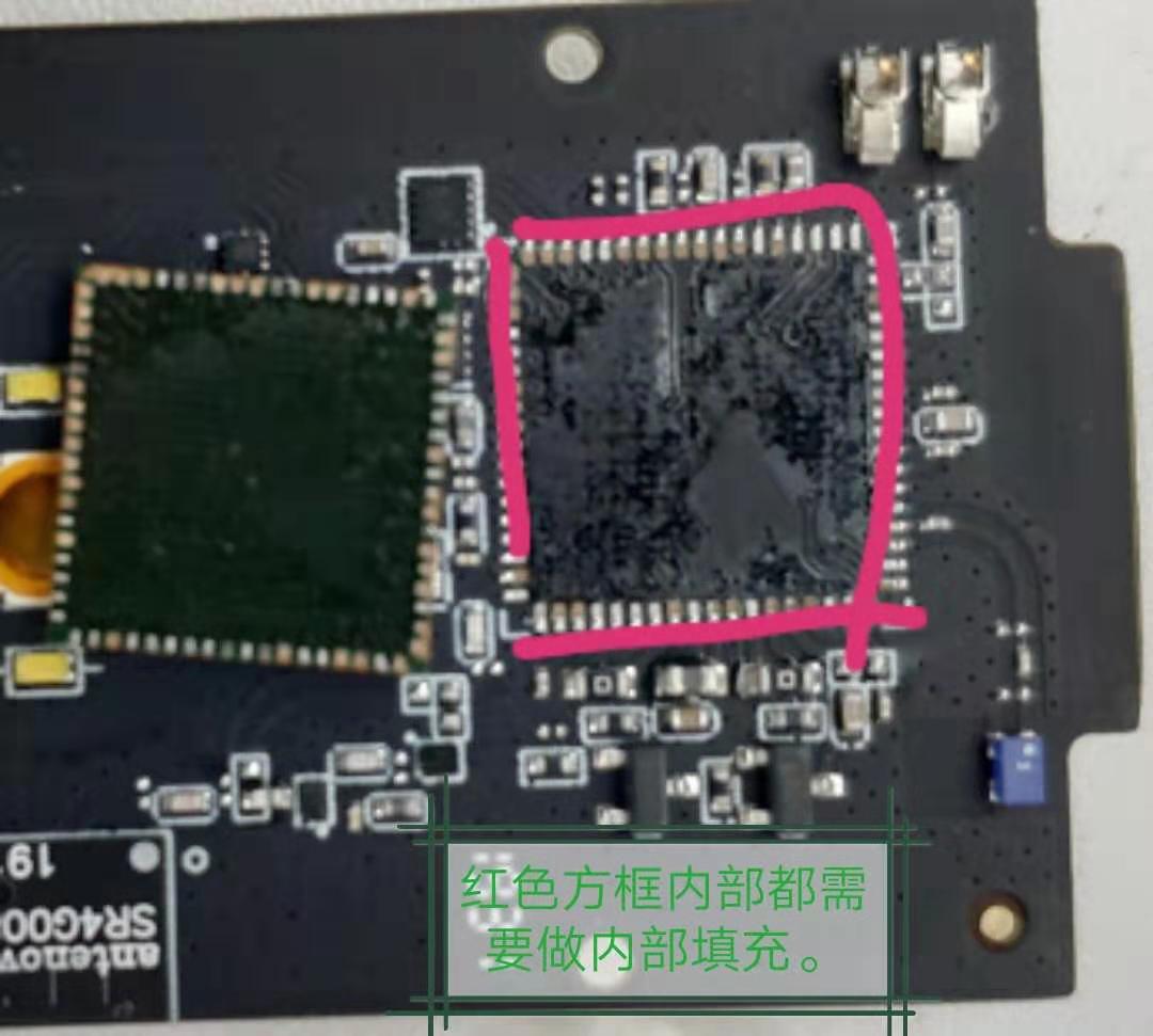 客户的产品是车载定位仪,需要用胶的是一块QFN芯片,正方形10mm×10mm,18个脚×4。